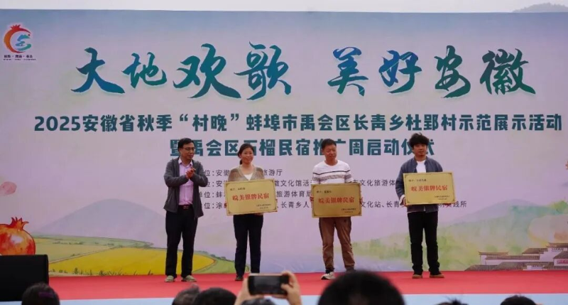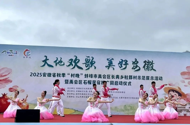 金秋送爽,石榴飘香。9月28日上午,“大地欢歌·美好安徽”2025安徽省秋季“村晚”蚌埠市禹会区长青乡杜郢村示范展示活动暨禹会区石榴民宿推广周启动仪式在杜郢村年俗广场隆重举行。
