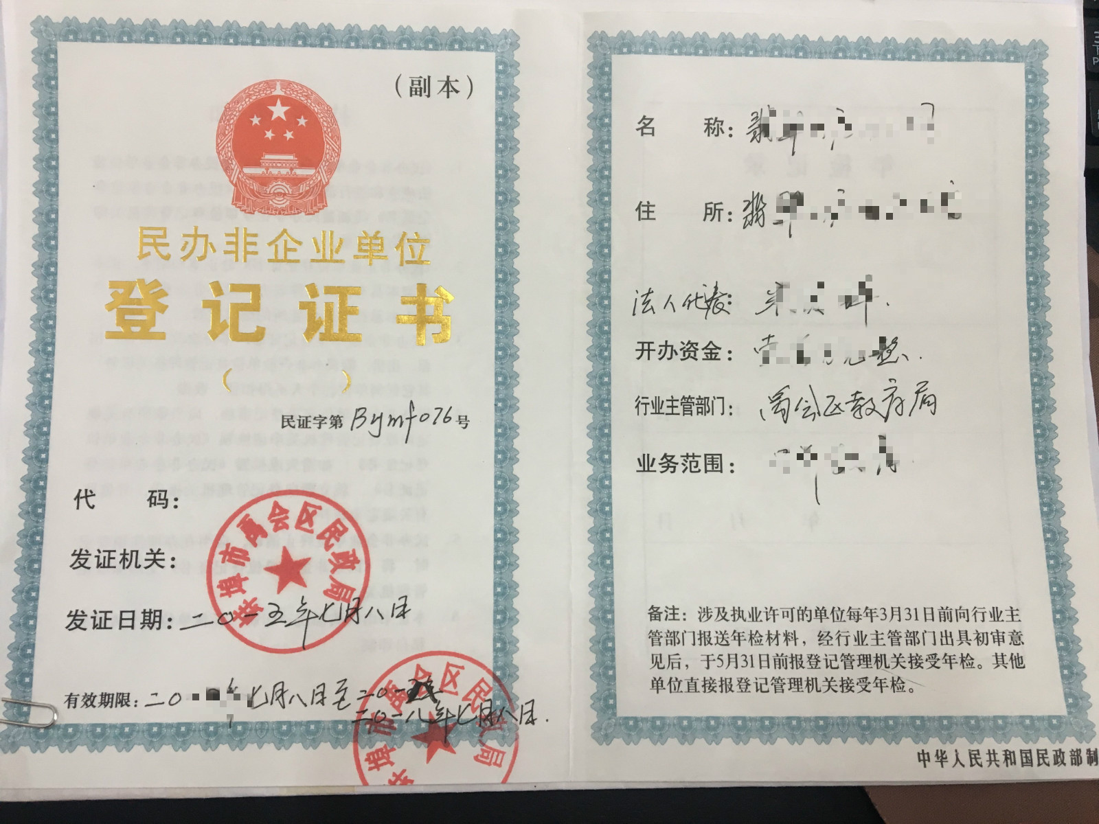 | 办结 | 1个工作日 | 蚌埠市禹会区民政局 | 刘敏 | 社会组织管理科 | 在符合法律法规及有关规定的前提下,手续齐全,在承诺期限内办结当事人提出的有关事务。 | 无 |