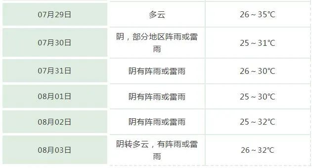 从气温上看,28日至8月4日全省大部分地区高温天气缓和,仅淮河以北部分地区最高气温超过35℃。