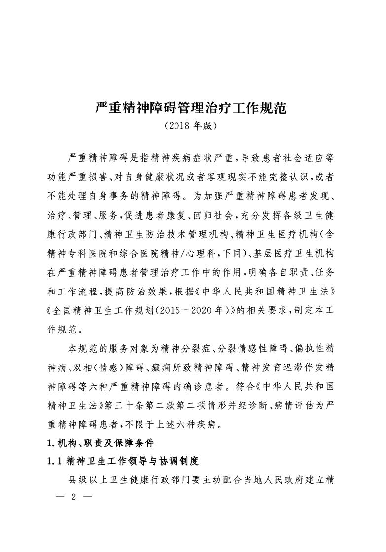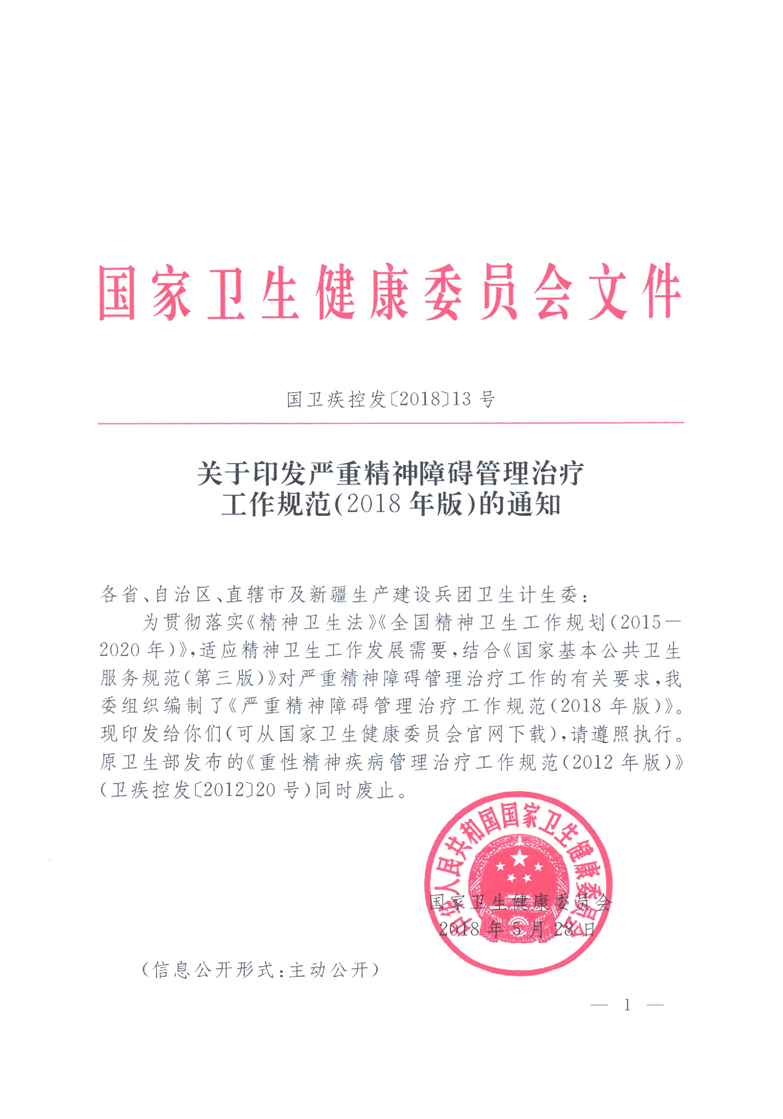 关于印发严重精神障碍管理治疗工作规范(2018年版)的通知