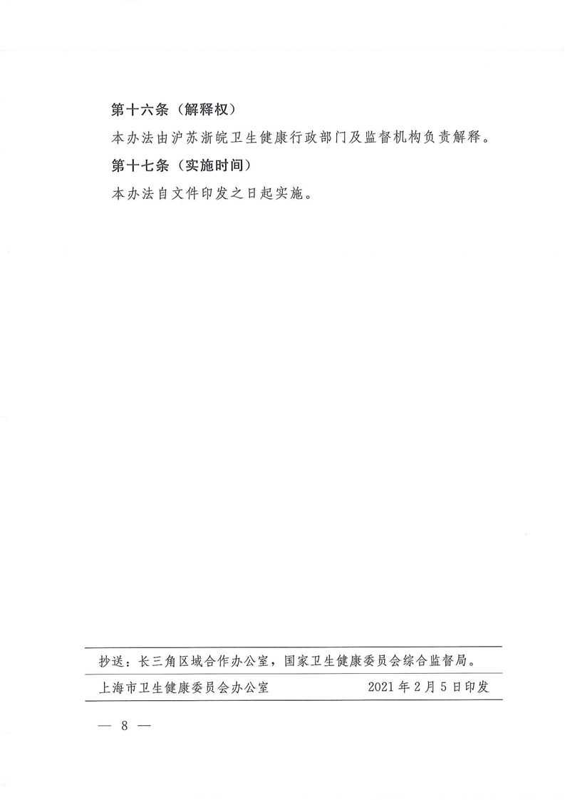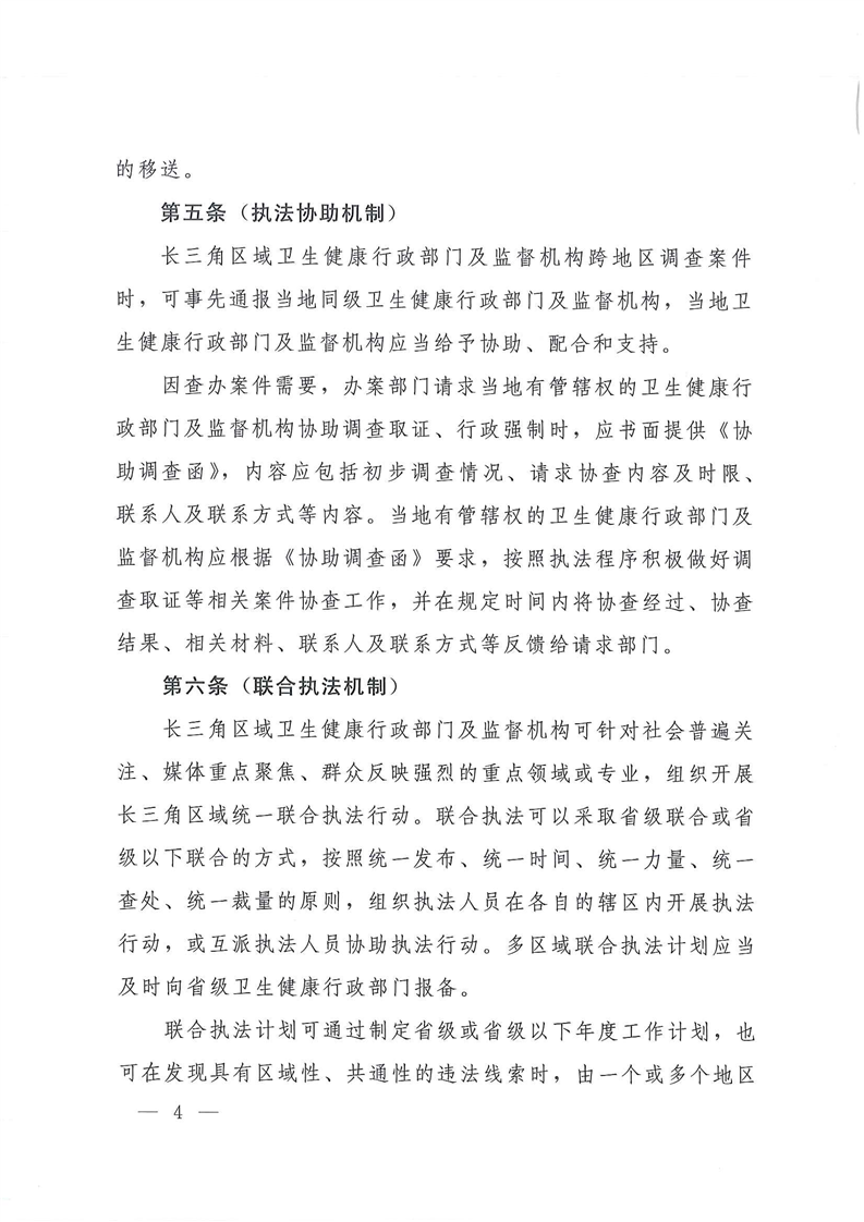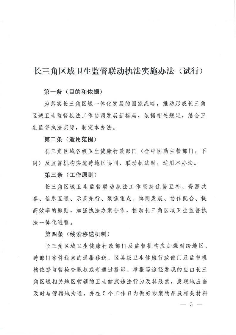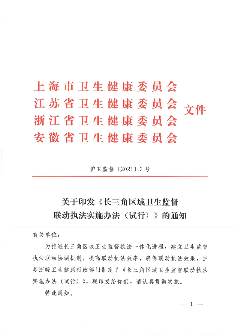 关于转发《长三角区域卫生监督联动执法实施办法(试行)》的通知