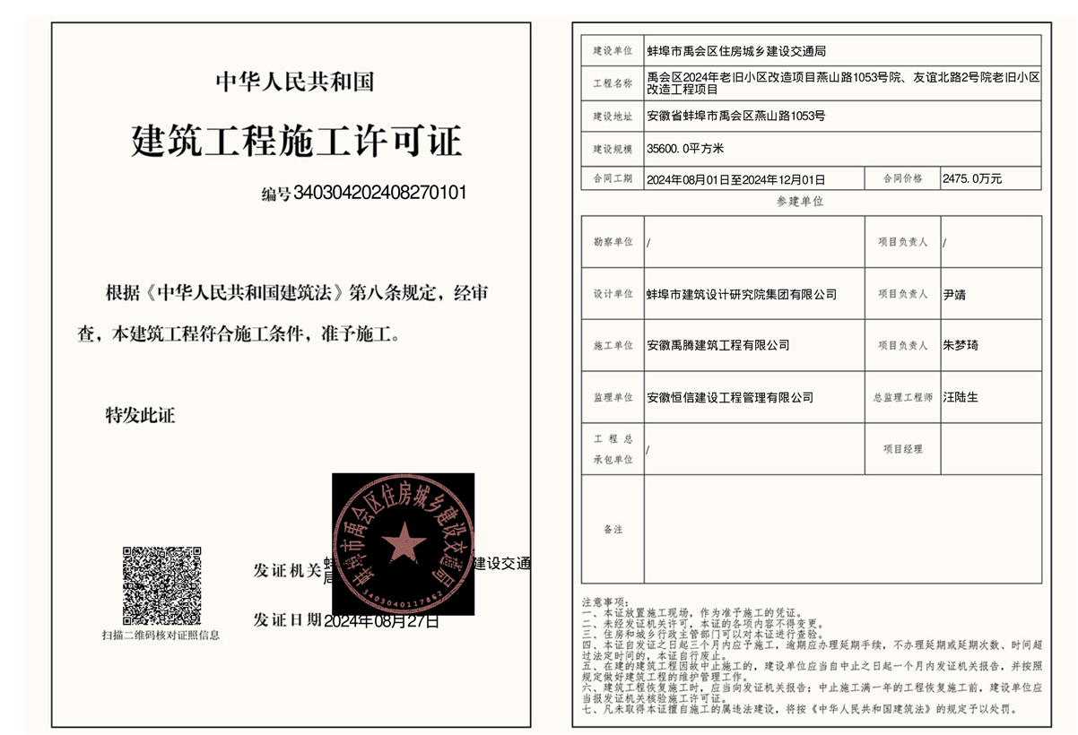 建筑工程施工许可证核发(燕山路1053号院、友谊北路2号院老旧小区改造)