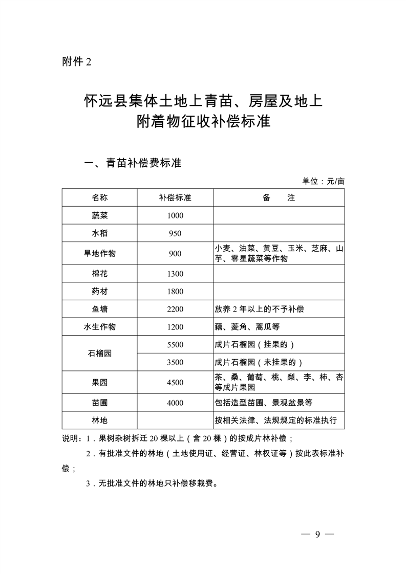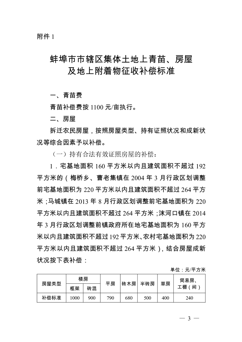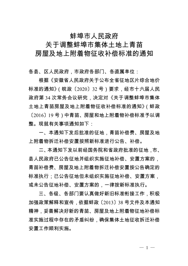 蚌埠市人民政府关于调整蚌埠市集体土地上青苗房屋及地上附着物征收补偿标准的通知