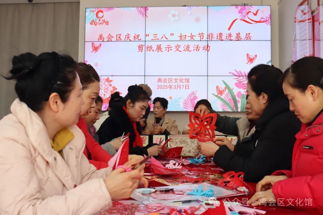 禹会区文化馆庆祝“三八”妇女节开展非遗剪纸进基层展示交流活动
