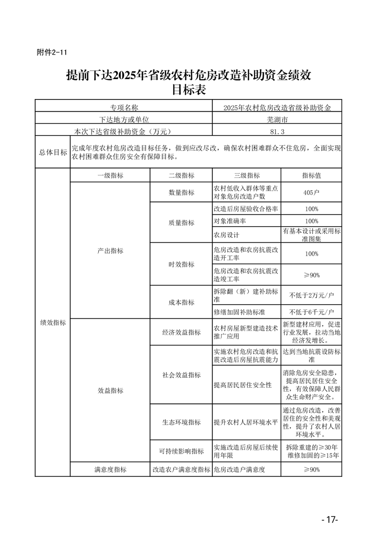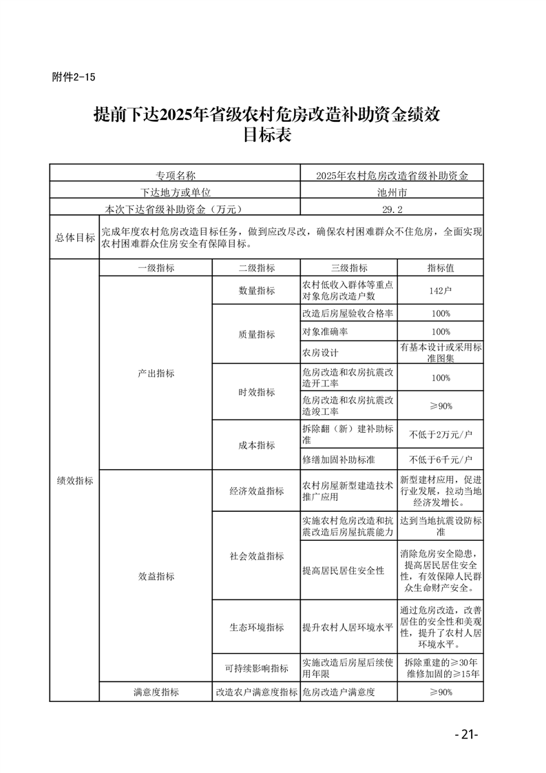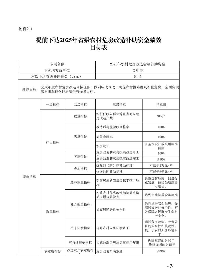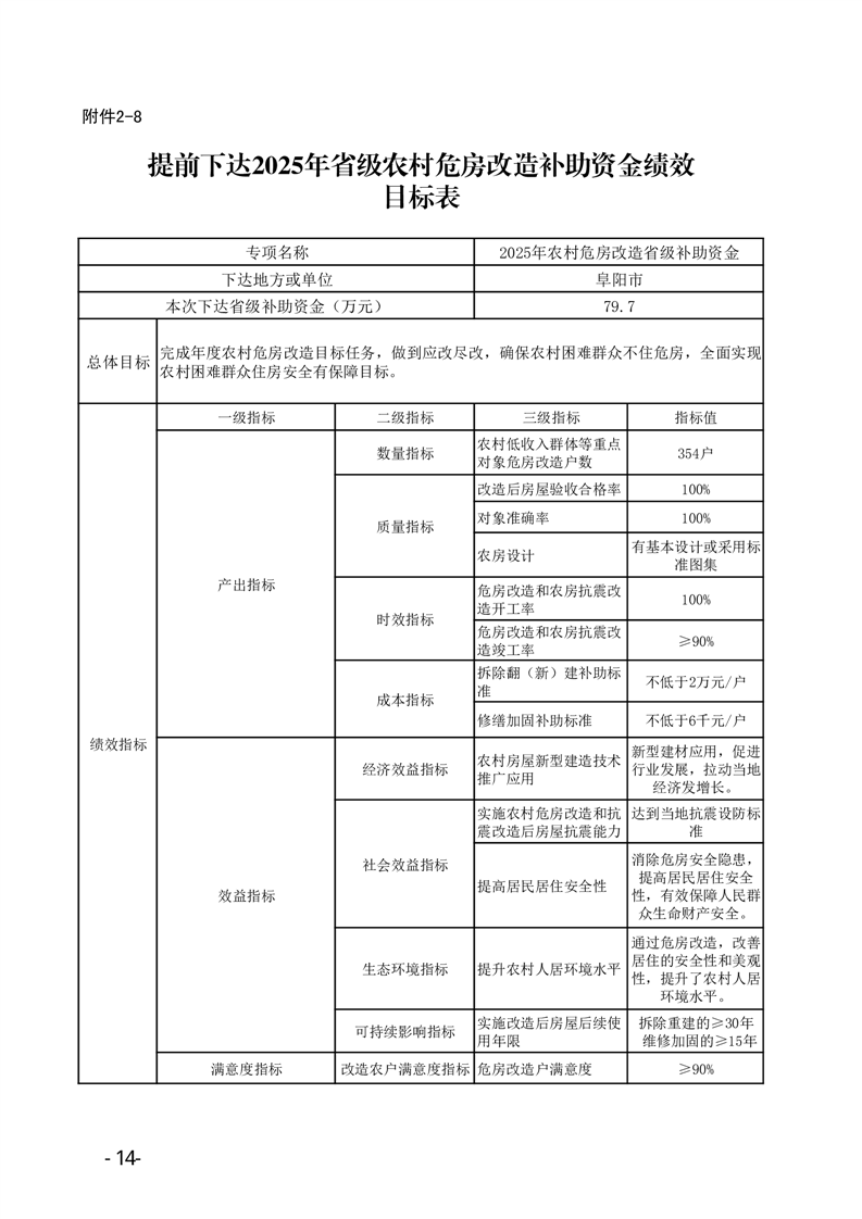 关于提前下达2025年省级农村危房改造补助资金的通知(皖财建【2024】1362号)