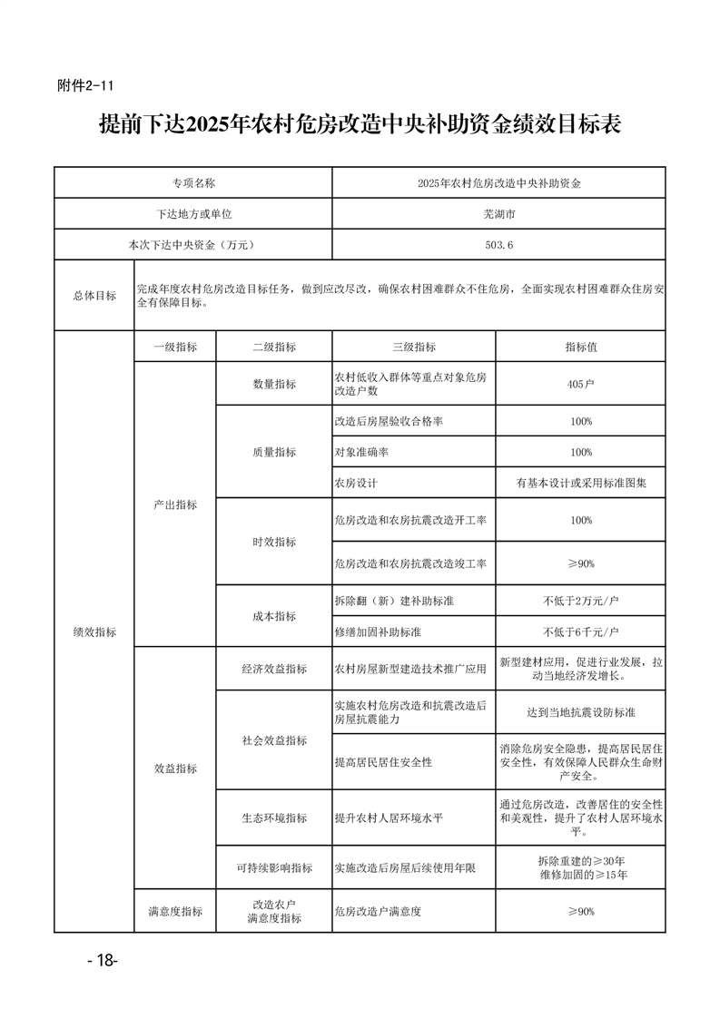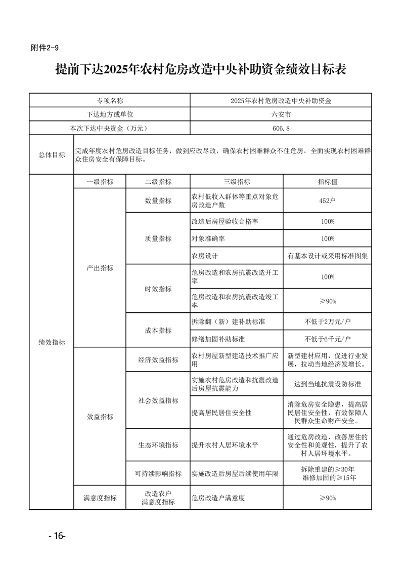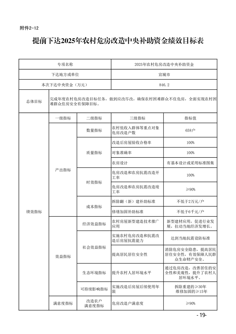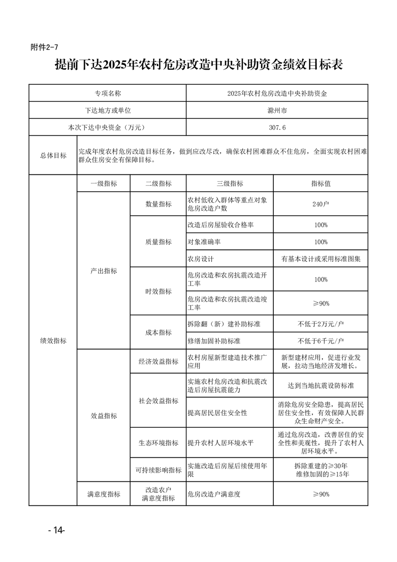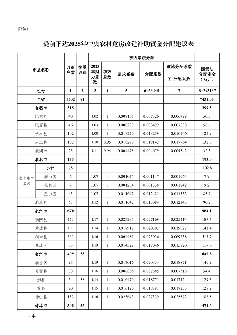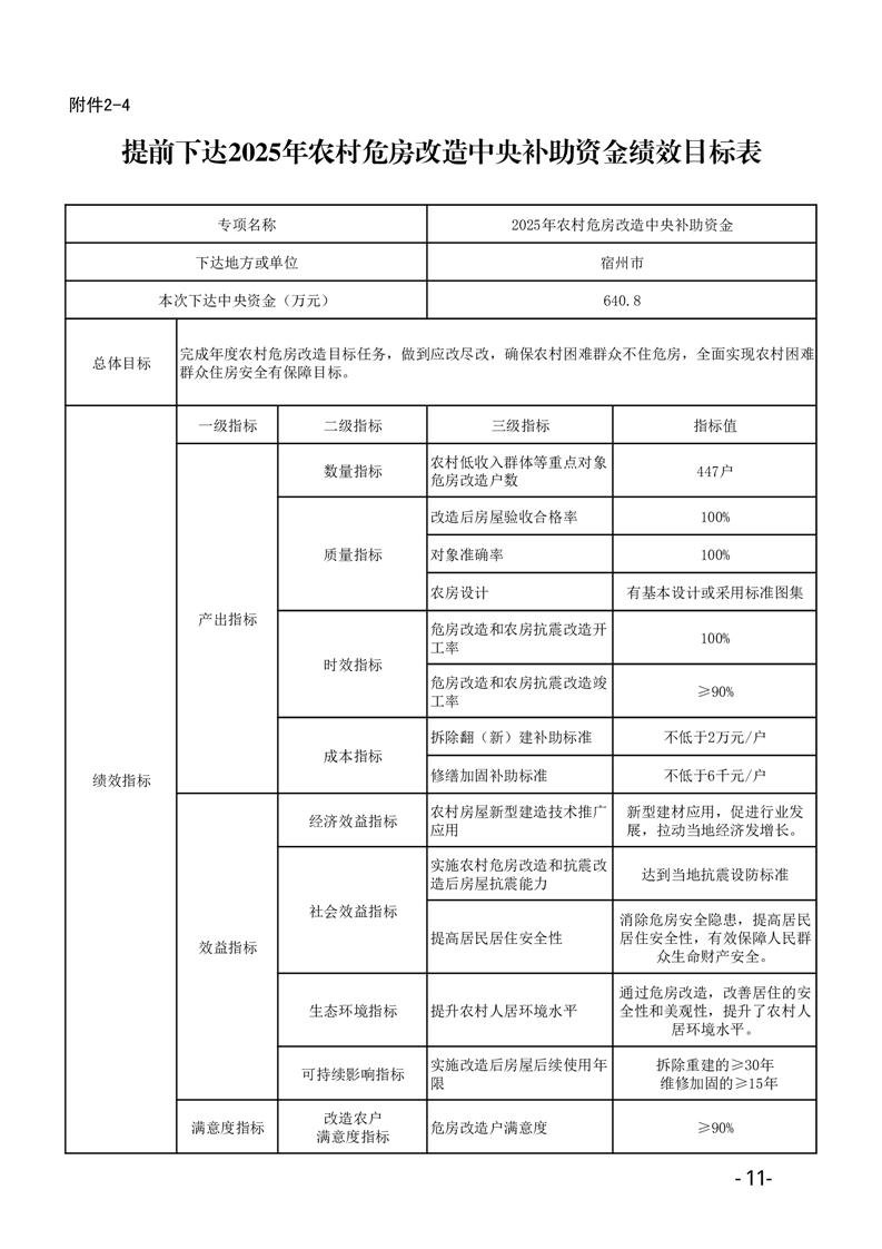 关于提前下达2025年中央财政农村危房改造补助资金预算的通知(皖财建【2024】1221号)