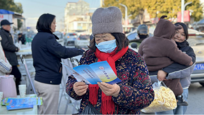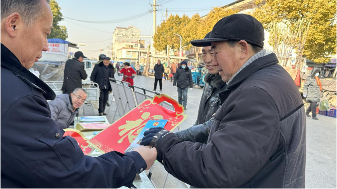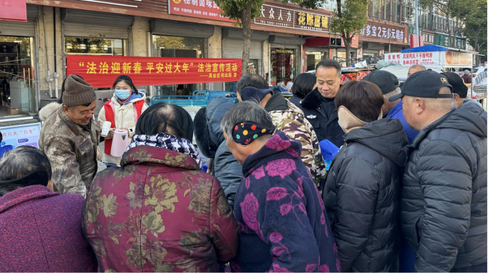 法治宣传展台前人潮涌动,工作人员和大学生普法志愿者对群众送上法治大礼包,倡导群众尊法学法守法用法,增强自身法律意识。面对老年群体防范意识薄弱的情况,通过以案释法重点宣传《反电信网络诈骗法》,引导他们防范新型诈骗风险,守好“钱袋子”,过好“幸福年”。