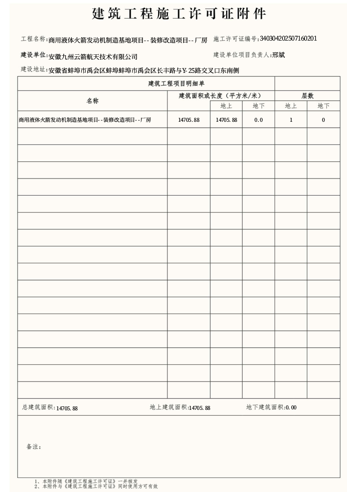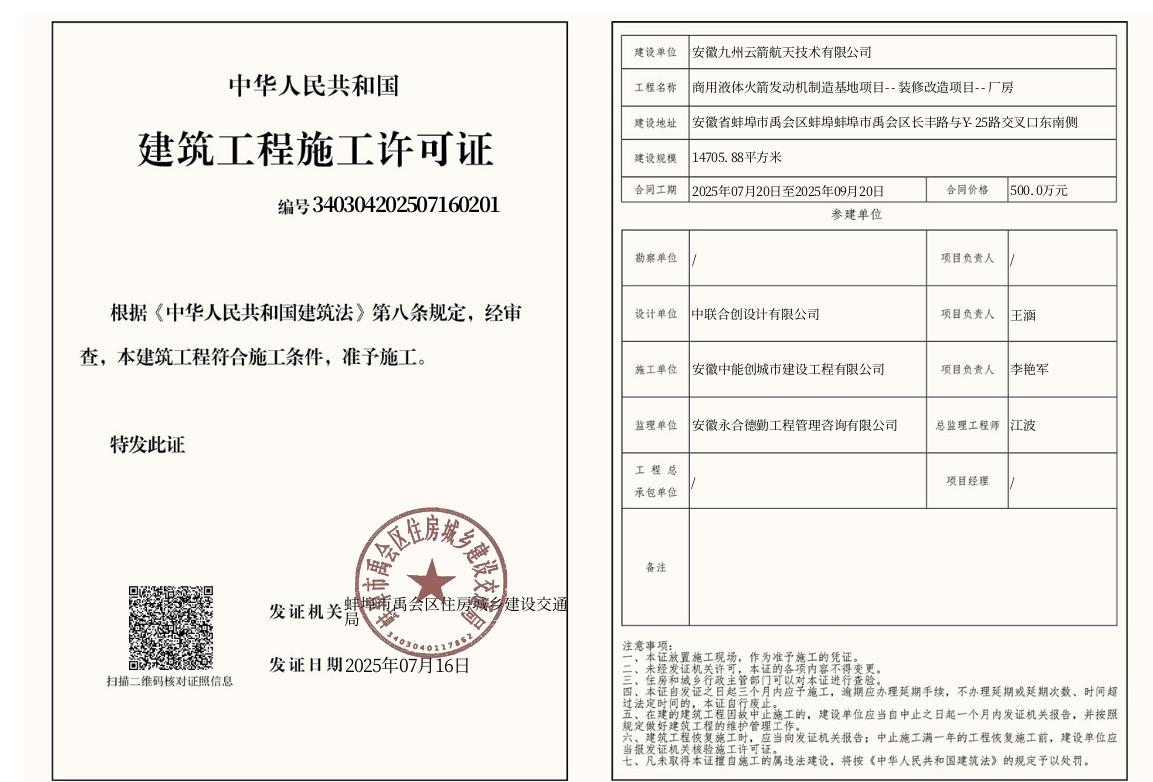 建筑工程施工许可证核发(商用液体火箭发动机制造基地项目)