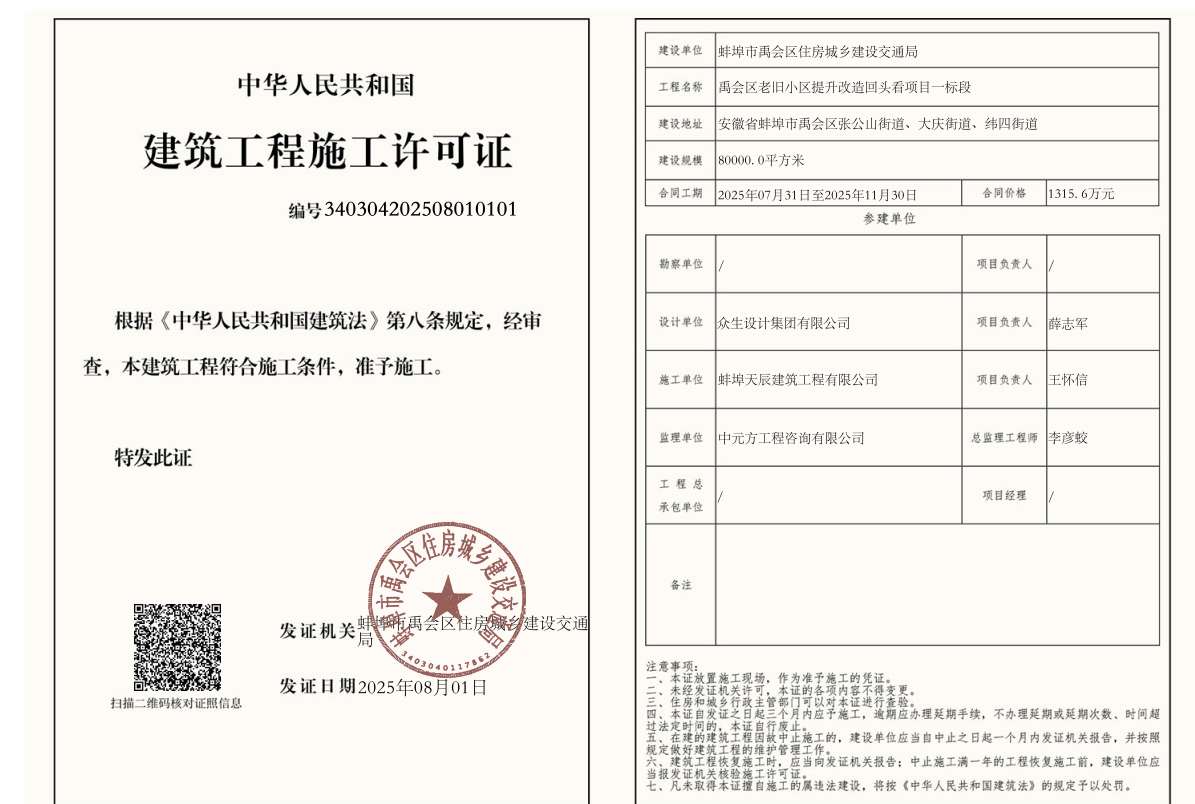 建筑工程施工许可证核发(禹会区老旧小区提升改造回头看项目一标段)