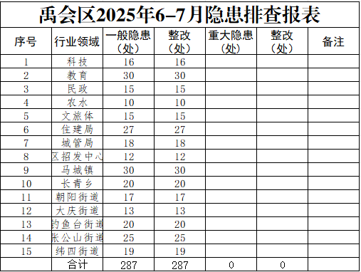 禹会区2025年6-7月隐患排查报表 |