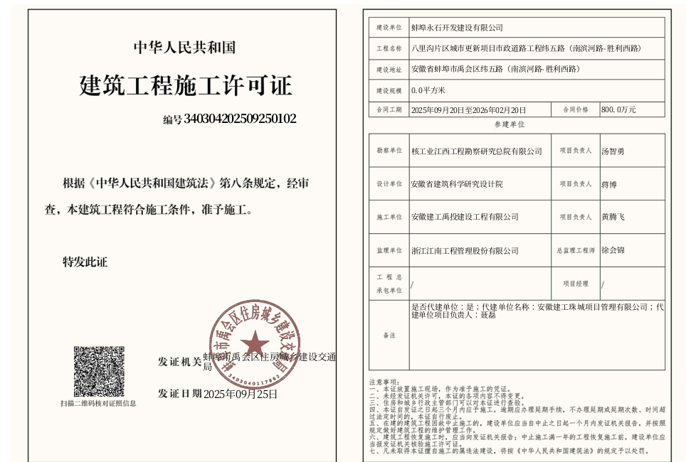建筑工程施工许可证核发(八里沟片区城市更新纬五路)(南滨河路-胜利西路)