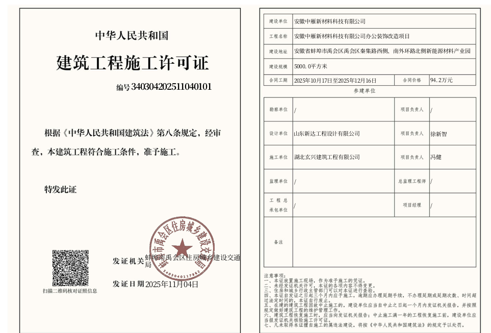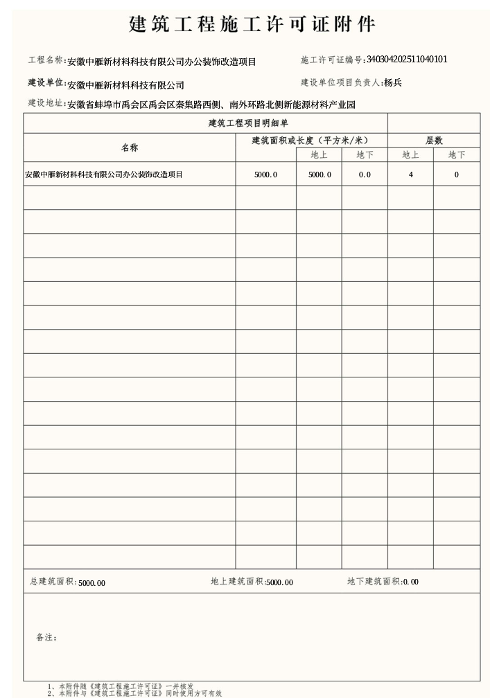 建筑工程施工许可证核发(中雁新材料办公装饰)