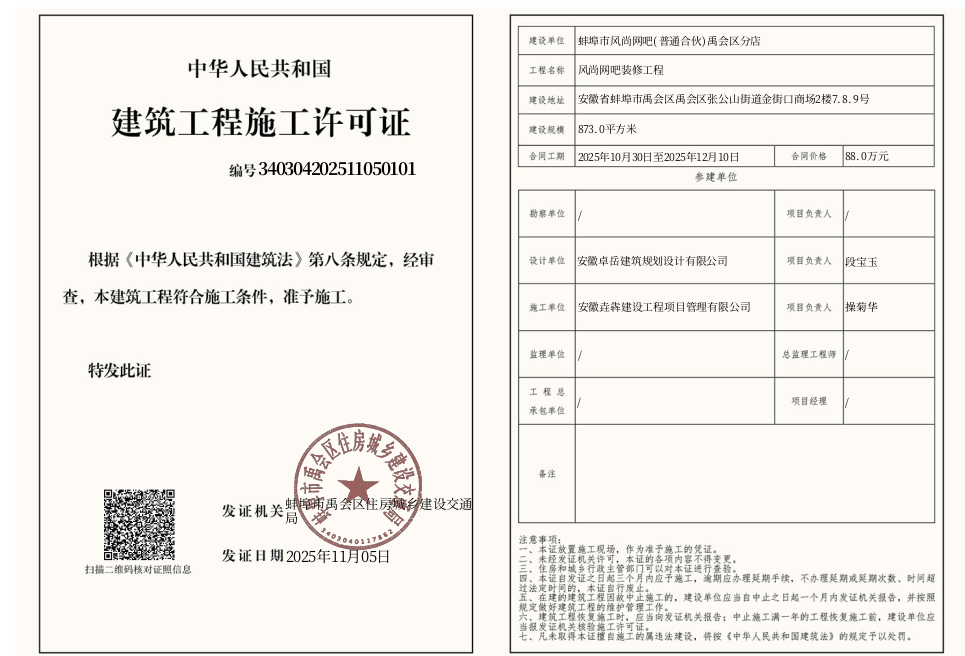 建筑工程施工许可证核发(风尚网吧装修工程)