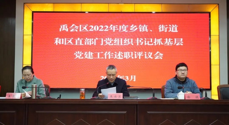 3月21日上午,禹会区2022年度乡镇、街道和区直部门党组织书记抓基层党建工作述职评议会议召开。区委书记、区政府区长王启卫主持会议并讲话。区四大班子成员出席会议。